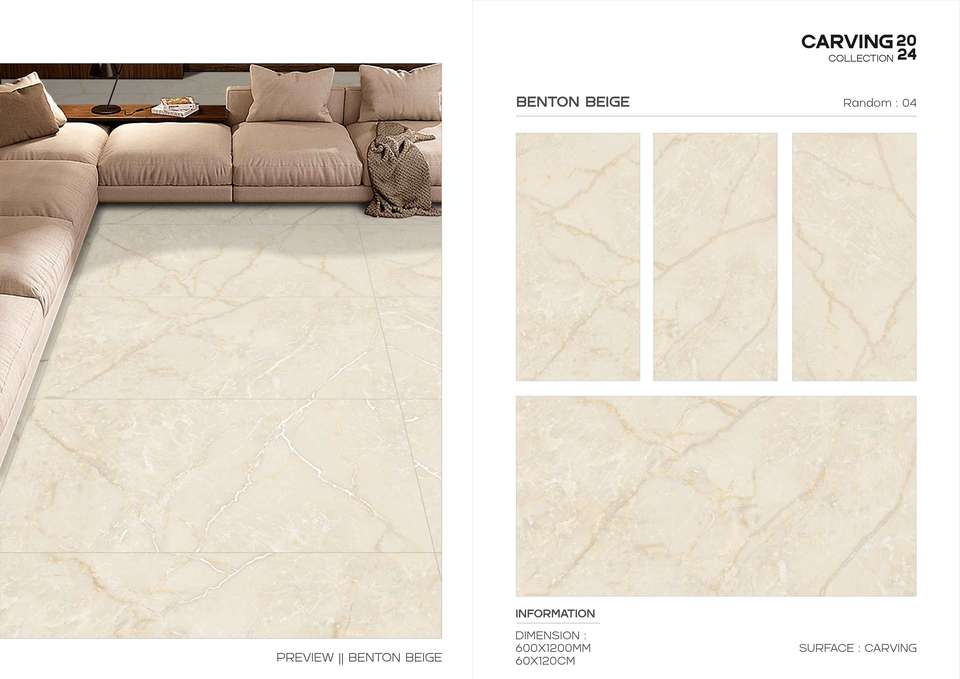 Elegant Carving Porcelain Tile 600x1200 Large Format Premium Textured Surface Wall Floor Modern Interior Exterior Use