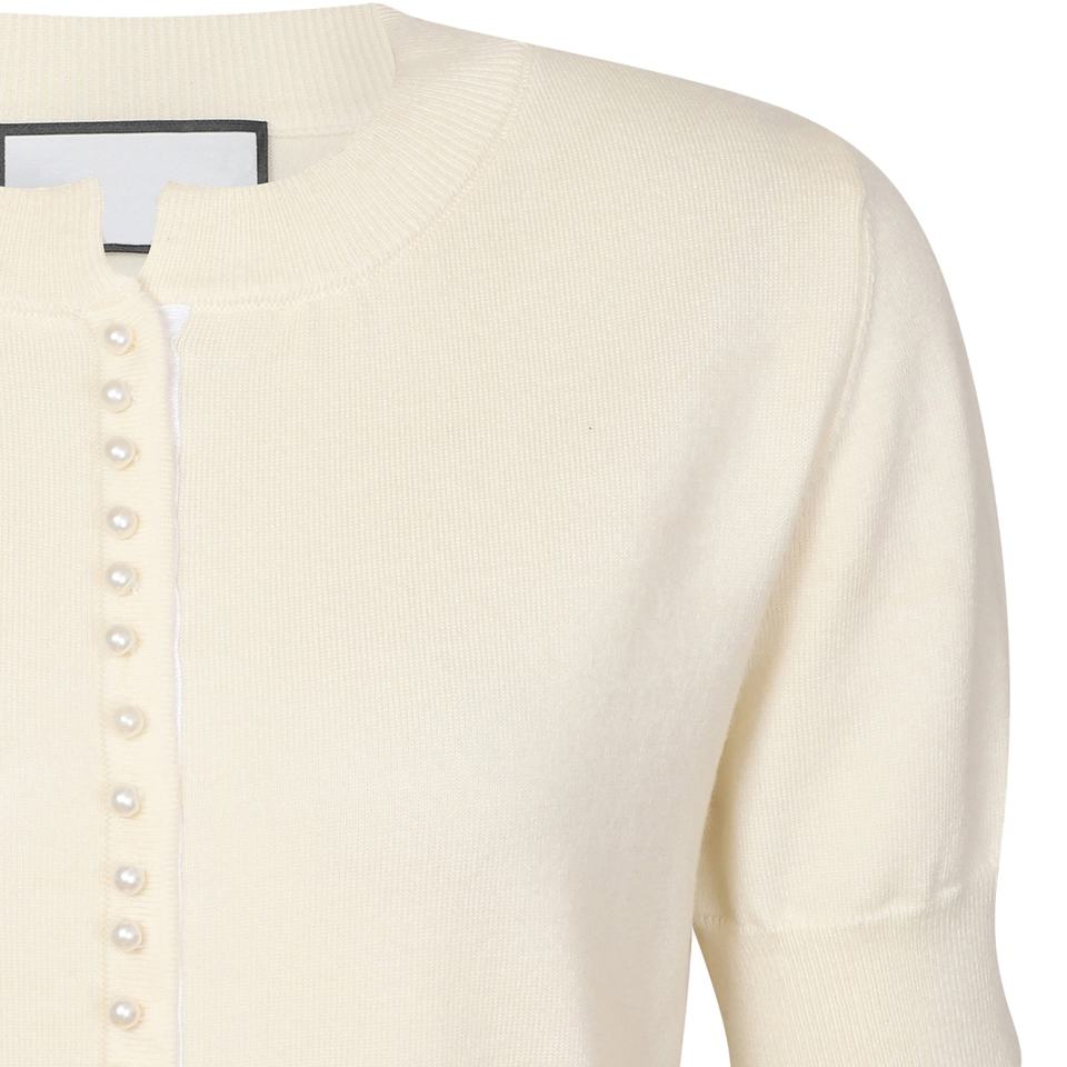 เสื้อคาร์ดิแกนไหมพรมผู้หญิง ดีไซน์พิมพ์ลาย ระบายอากาศได้ดี แขนสั้น ติดกระดุมเม็ดเดียว สไตล์ลำลองหรูหรา เหมาะสำหรับฤดูใบไม้ร่วง/ฤดูใบไม้ผลิ