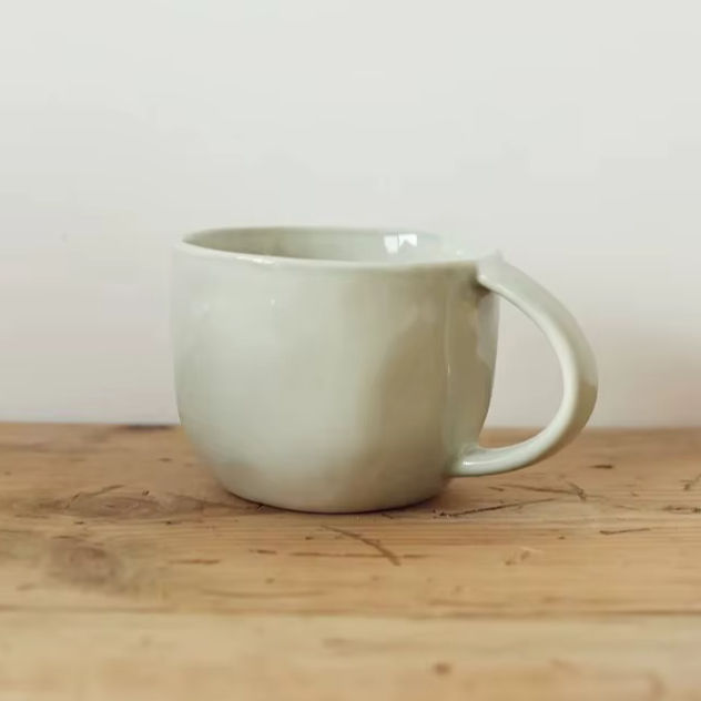 แก้วกาแฟเซรามิกดีไซน์หรูหรา เคลือบครีมเนื้อนุ่ม ทรงโค้งมน จับถนัดมือ ทนความร้อน เหมาะสำหรับห้องครัวที่เหนือกาลเวลา