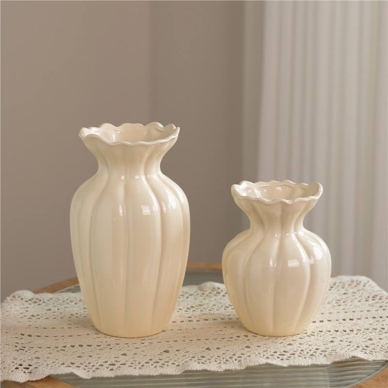แจกันเซรามิกสีขาวสไตล์ฝรั่งเศสสุดหรูสำหรับตกแต่งห้องนั่งเล่นด้วยดอกไม้สด ของขวัญขึ้นบ้านใหม่