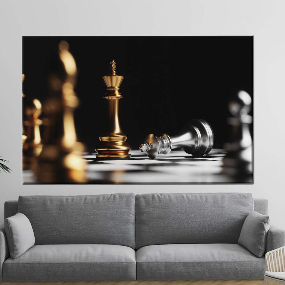 ผ้าใบลายกลยุทธ์หมากรุกสุดหรู: ลายพิมพ์กษัตริย์สีทองและสีเงินแบบเช็คเมท, 1P: ห่อหุ้มอย่างดี