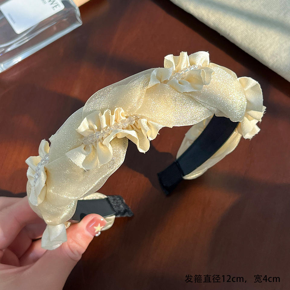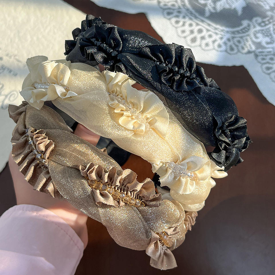 Elegant KAKA Chiffon Headband Sweet Snow Pleated Design Bow Tie Black Lace Hairband European-American Style Wedding Perfect
