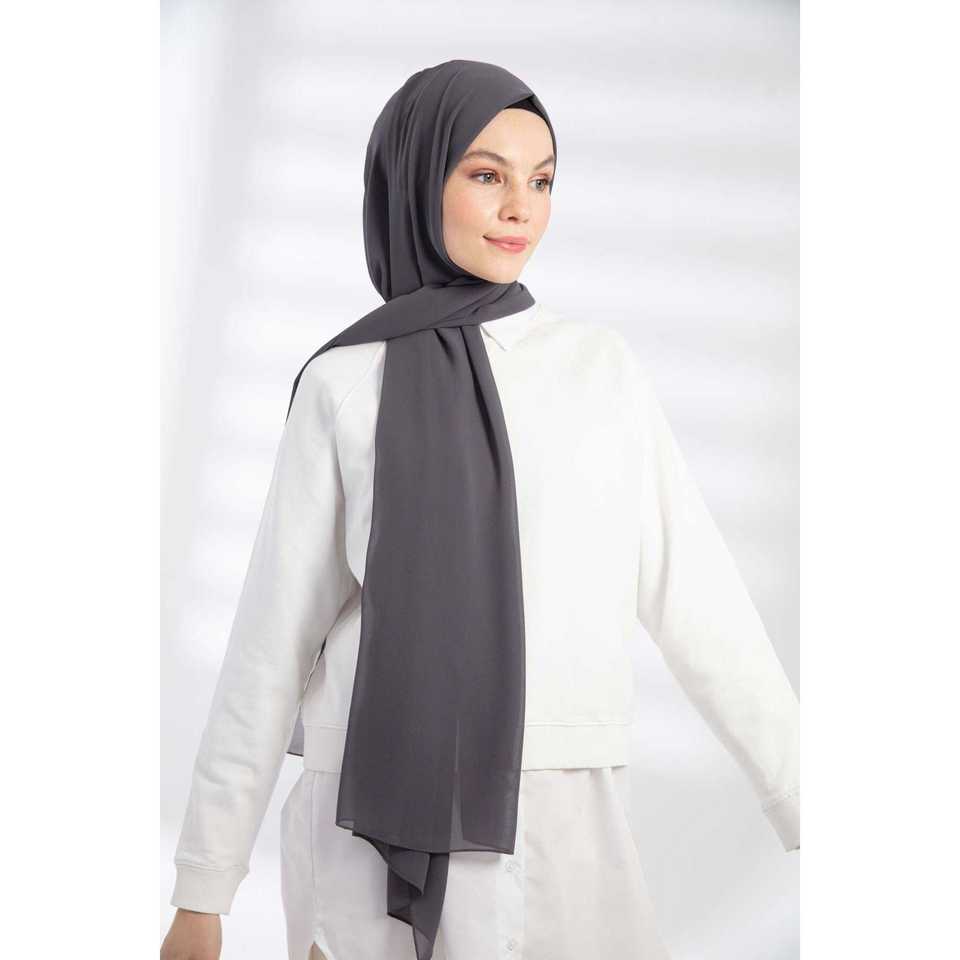 ผ้าคลุมไหล่ชีฟองหรูหราสำหรับผู้หญิง สีแอนทราไซต์ ผ้าพันคอยาวน้ำหนักเบา สไตล์ดั้งเดิม เครื่องประดับศีรษะ