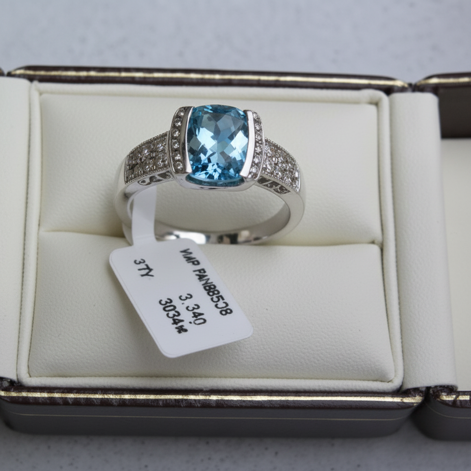 แหวนทองคำแท้ 14K ประดับไพลินสีน้ำเงินคลาสสิกและเพชร ดีไซน์หรูหราสำหรับงานแต่งงาน