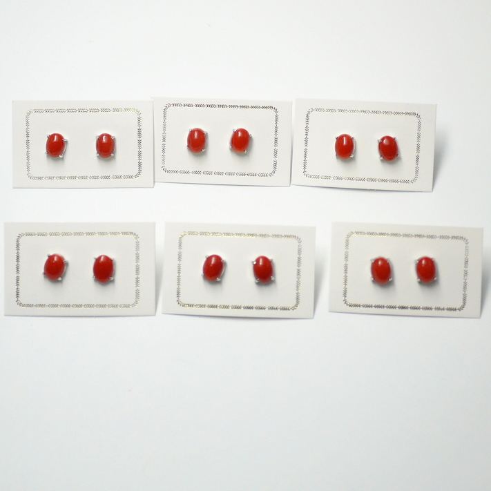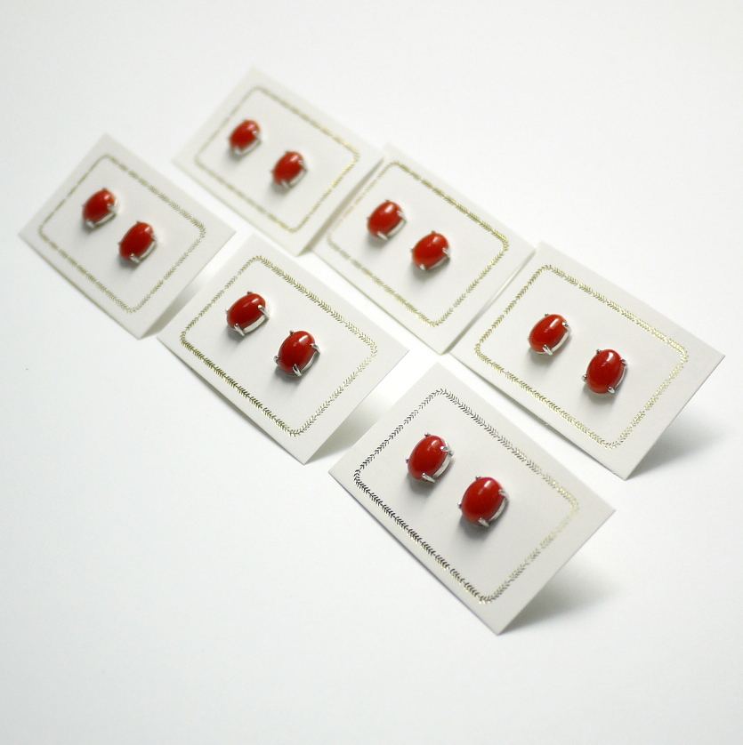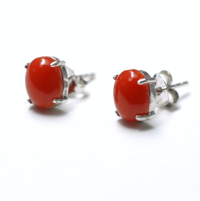 ต่างหูเงินแท้ทรงรีประดับด้วยปะการังสีแดงคลาสสิก รุ่น THUNDERBIRD CRE0018 ขนาด 6x8 มม. แบบหนีบ