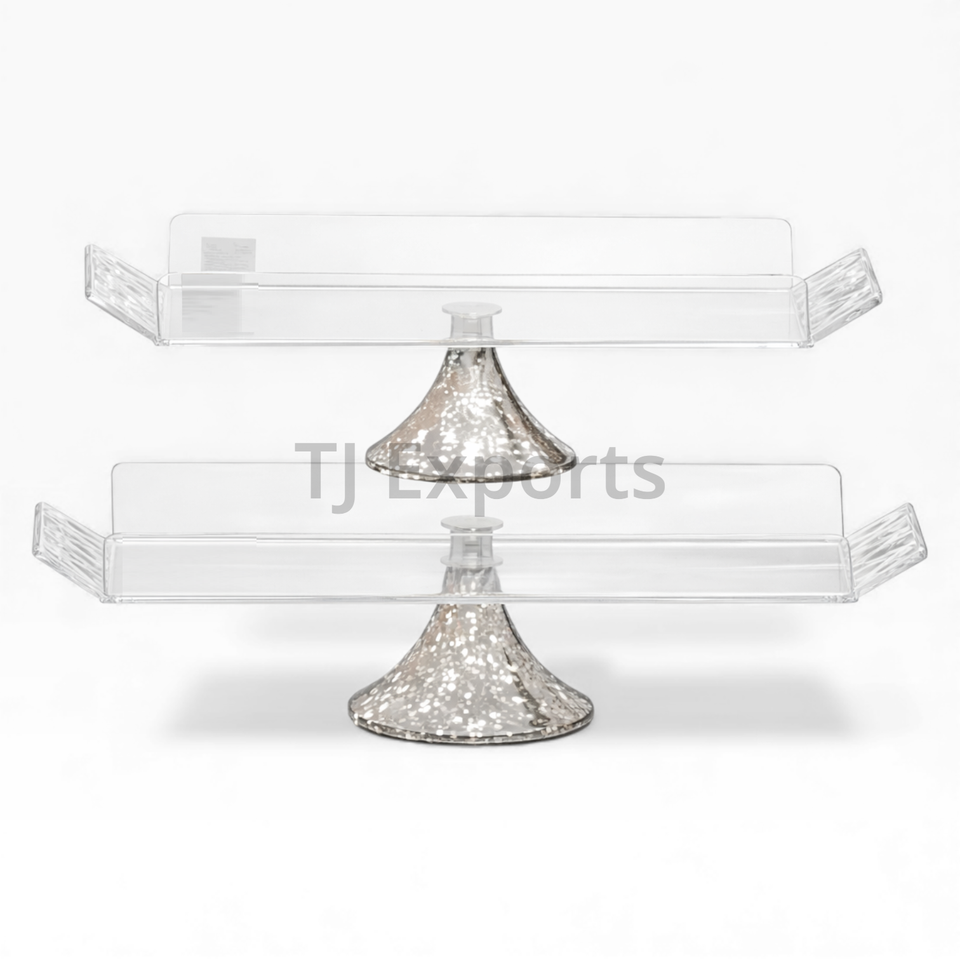 ที่เสิร์ฟช็อกโกแลตอะคริลิกใสหรูหราพร้อมฐานสีเงินตกแต่งสำหรับจัดแสดงขนมหวานระดับพรีเมียม