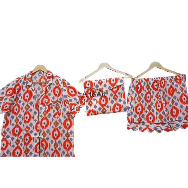 ชุดนอนแขนสั้นผ้าฝ้ายหรูหราสวมใส่สบายผู้หญิงชุดนอนมีสไตล์ใช้งานได้จริงกระเป๋าระบายอากาศได้ดีฤดูร้อนสวมใส่ได้ทุกวัน