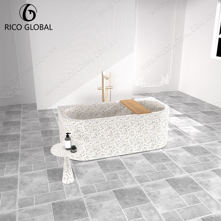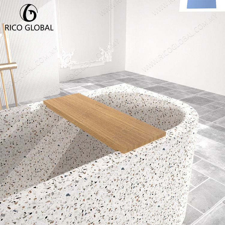 อ่างอาบน้ำอาบน้ำหินขัดผิวเรียบหรูสไตล์ร่วมสมัยอ่างสปาในร่ม