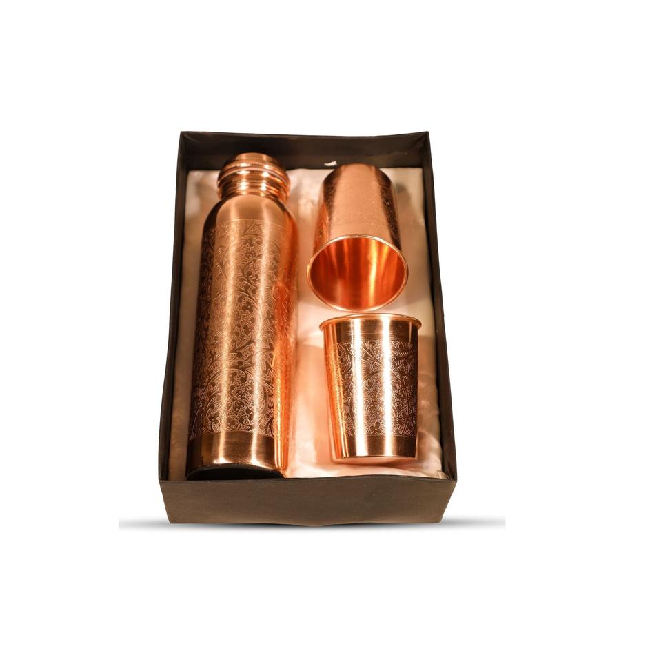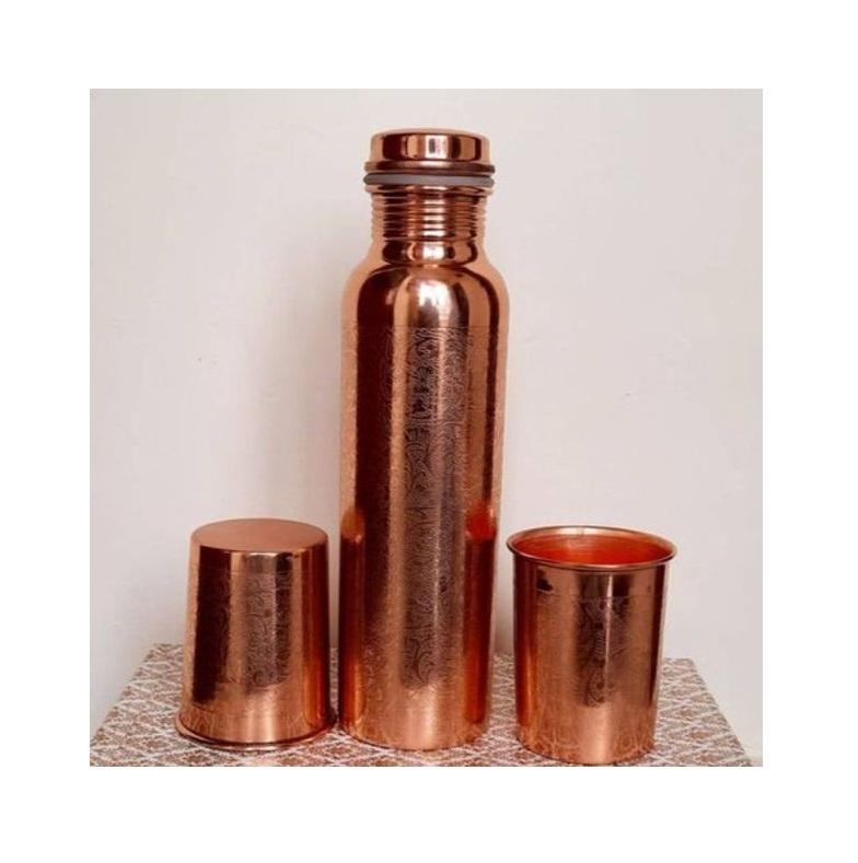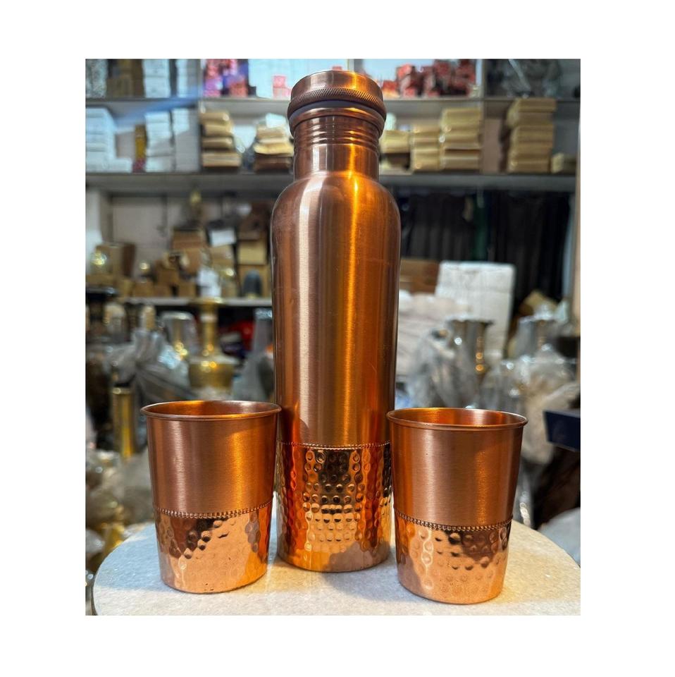 ขวดทองแดงสุดหรูและแก้วคู่สำหรับพิธีกรรมการดื่มน้ำเพื่อสุขภาพประจำวันและการเพลิดเพลินกับไลฟ์สไตล์ที่ทันสมัยระดับพรีเมียม