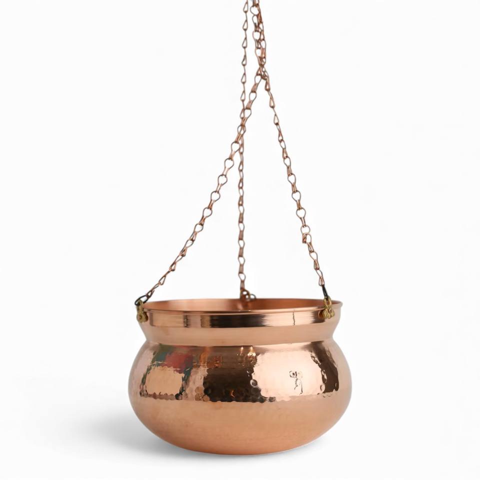 ชุดกระถางแขวนทองแดงสุดหรูพร้อมโซ่ยาวสำหรับตกแต่งบ้านอย่างมีสไตล์และจัดแสดงต้นไม้