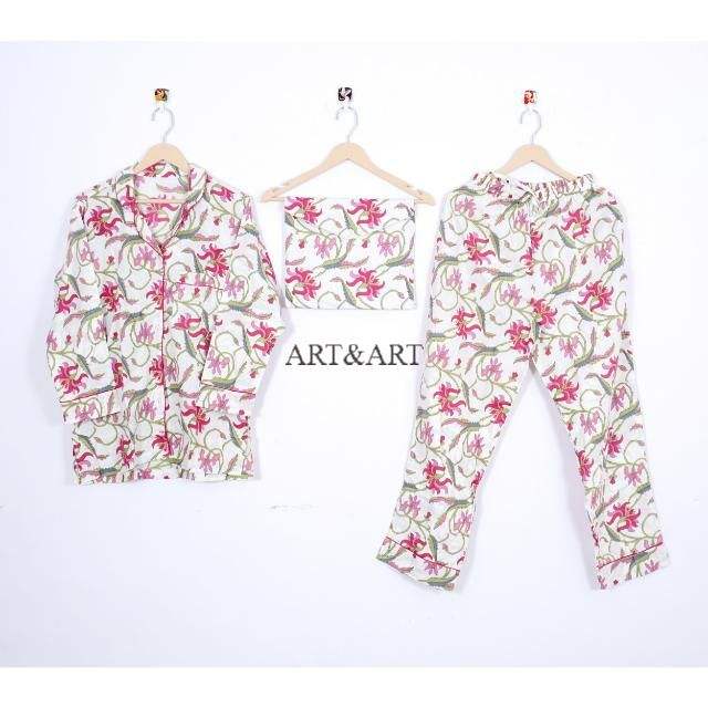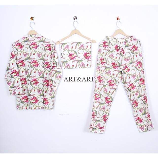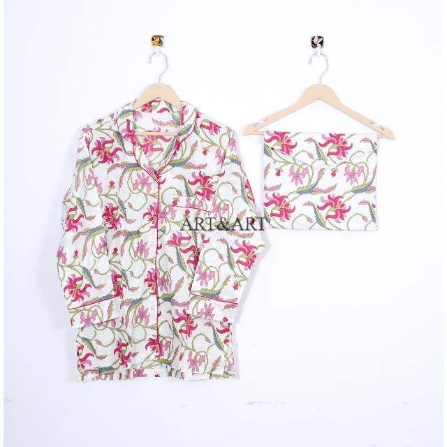 ชุดนอนผ้าฝ้ายพิมพ์ลายดอกไม้สุดหรูสำหรับผู้หญิง เนื้อผ้านุ่มสบาย สไตล์อินเดีย เหมาะสำหรับค่ำคืนที่ผ่อนคลายและการนอนหลับที่สงบ