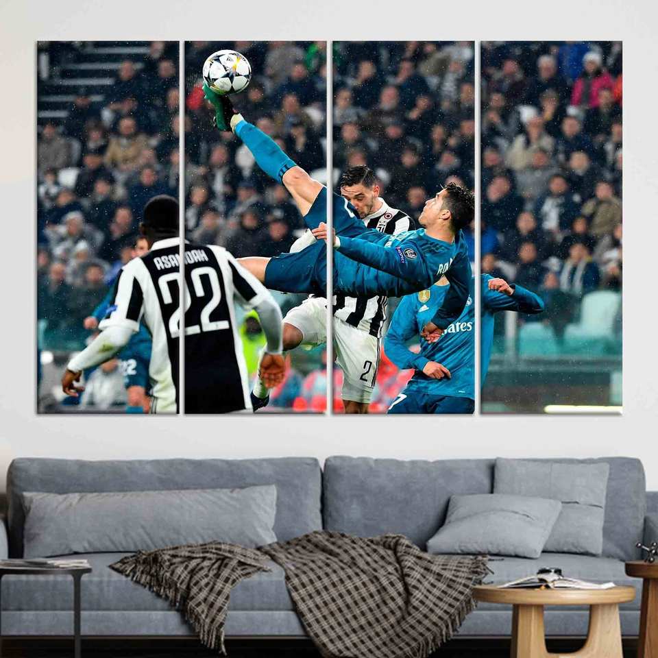 ภาพพิมพ์บนผ้าใบคริสเตียโน โรนัลโดสุดหรู: โปสเตอร์ฟุตบอลแบบปรับแต่งได้ ชุดผ้าใบ 4 ชิ้น