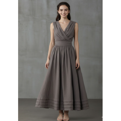 เดรสยาวทรงเอไลน์ไขว้ด้านหน้า ดีไซน์หรูหรา แขนกุด คอวี กระโปรงบานคลาสสิก เดรสยาวสำหรับงานทางการ เดรสสไตล์มินิมอล