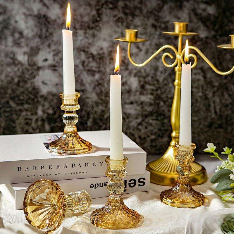 เชิงเทียนแก้วคริสตัลหรูหราฐานเชิงเทียนแก้วทรงเรียวหนาแข็งแรงขนาด4นิ้ว