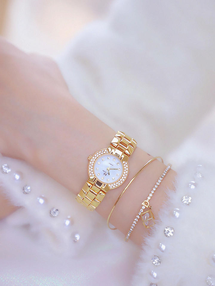 นาฬิกาข้อมือผู้หญิงคริสตัลหรูหรา สายโซ่บาง นาฬิกาควอตซ์