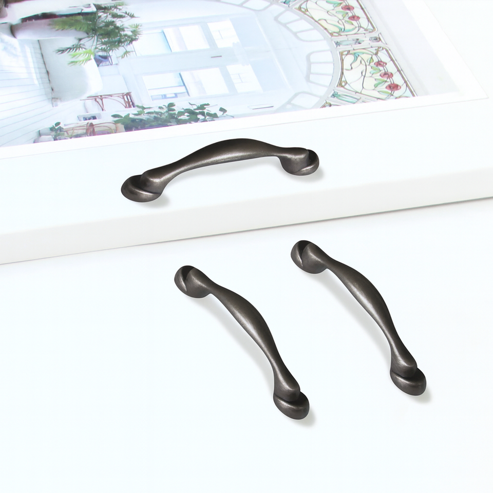 มือจับตู้โค้งมนสวยงาม ผลิตจากโลหะผสมสังกะสี ดีไซน์ร่วมสมัย สีดำ ทนทาน เป็นมิตรกับสิ่งแวดล้อม เหมาะสำหรับห้องครัว ห้องน้ำ ลิ้นชัก ตู้เสื้อผ้า