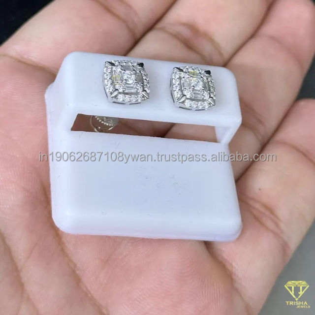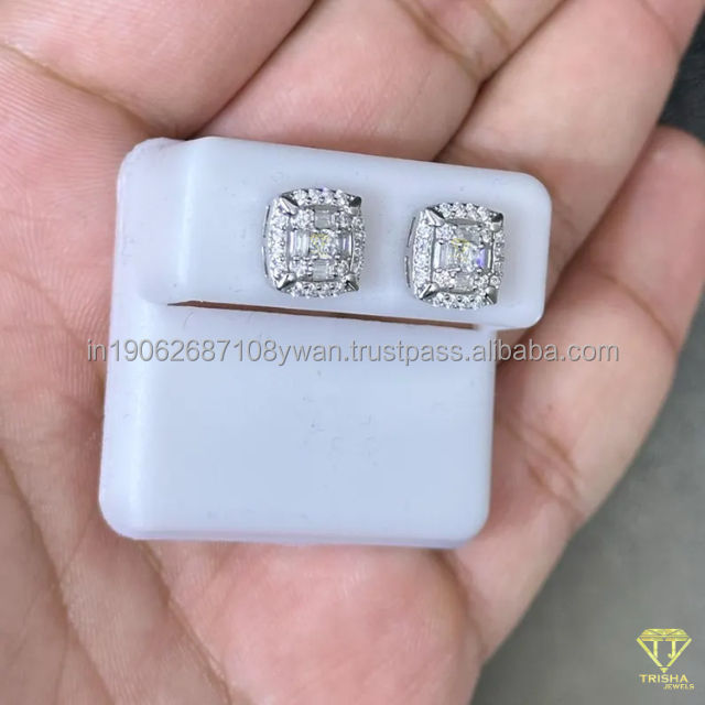 ต่างหูสตั๊ดสีขาวสีทองทรงสี่เหลี่ยมประกายระยิบระยับเครื่องประดับสำหรับงานแต่งเครื่องประดับหรูหราสวมใส่ทุกวันกระดุมสี่เหลี่ยมละเอียด
