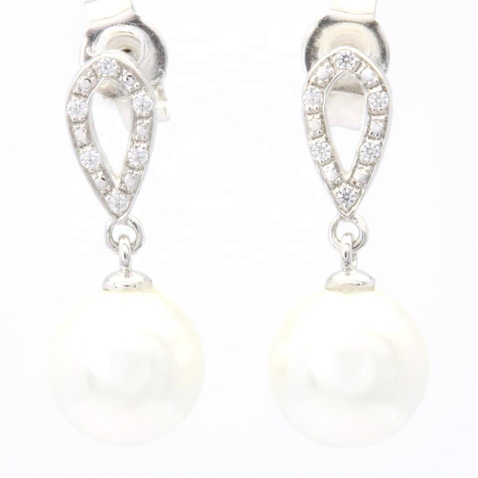 ต่างหูมุกสำหรับเจ้าสาวในงานแต่งงานดีไซน์คลาสสิกทำจากเงินสเตอร์ลิง925ออกแบบได้ตามต้องการ