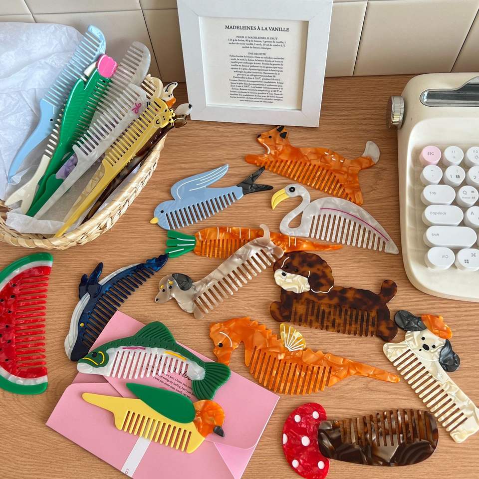 หวีผมอะซิเตทขนาดเล็ก ดีไซน์น่ารัก รูปสัตว์ ผัก ผลไม้ ปลา แยกเส้นผมง่าย