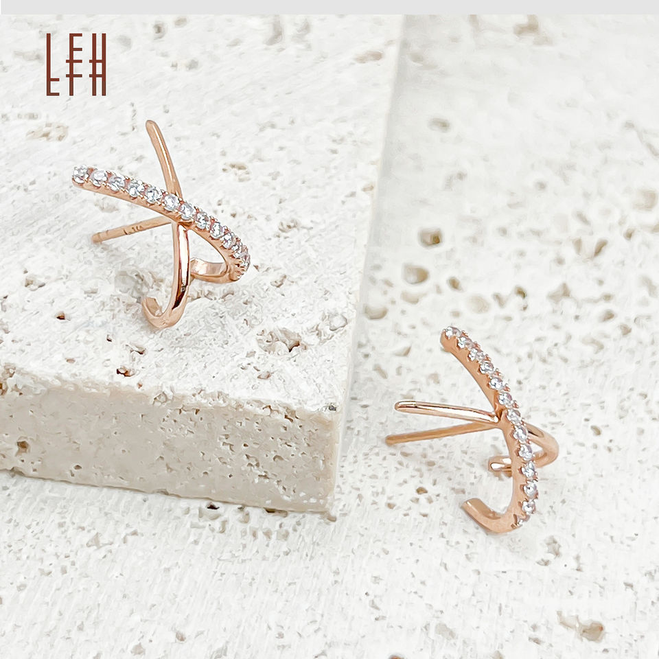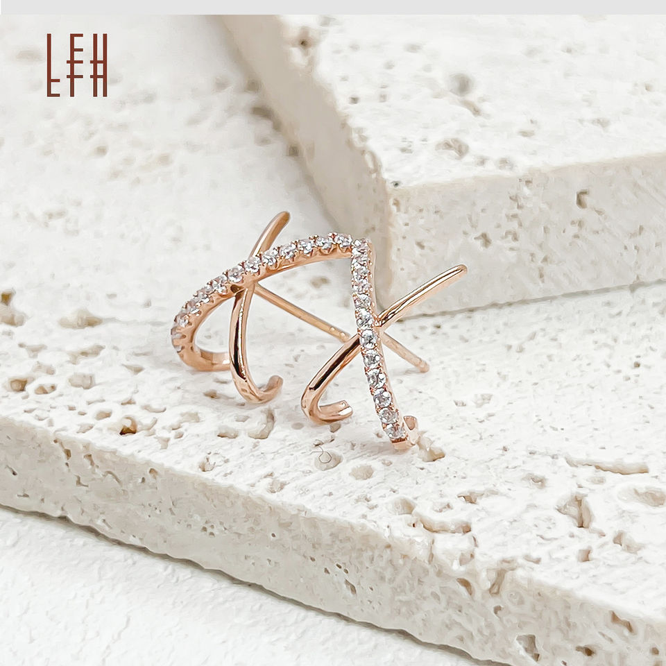 ต่างหูเพชร18K ประดับเพชรรูปตัว X ขนาดเล็กน่ารักและสง่างามต่างหูทองคำแท้18K