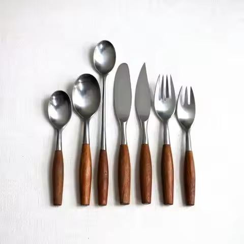 ชุดช้อนส้อมหรูหราพร้อมด้ามจับไม้โรสวูด สำหรับร้านอาหาร งานเลี้ยงอาหารค่ำ และงานแต่งงาน