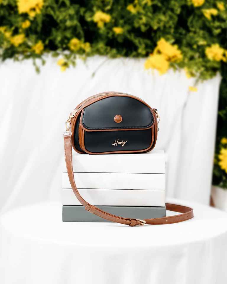 กระเป๋าสะพายข้างผู้หญิง Kyna ดีไซน์หรูหราสำหรับใช้ในชีวิตประจำวัน ผลิตจากหนังสังเคราะห์คุณภาพพรีเมียม พร้อมพื้นผิวซาตินและโลโก้สีทอง