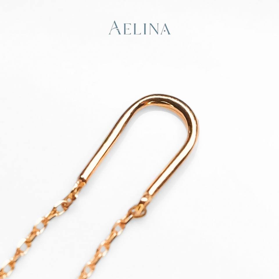 ต่างหูโซ่ห้อยแบบประณีตสีโรสโกลด์9K เครื่องประดับสองชั้นสไตล์มินิมอลลิน่าสำหรับแฟชั่นประจำวันดูแบรนด์ aelina