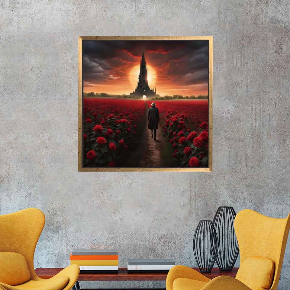 ศิลปะบนผืนผ้าใบลายหอคอยสีดำสุดหรู: งานพิมพ์ภาพศิลปะแฟนตาซีแบบภาพยนตร์ พร้อมกรอบสีทอง