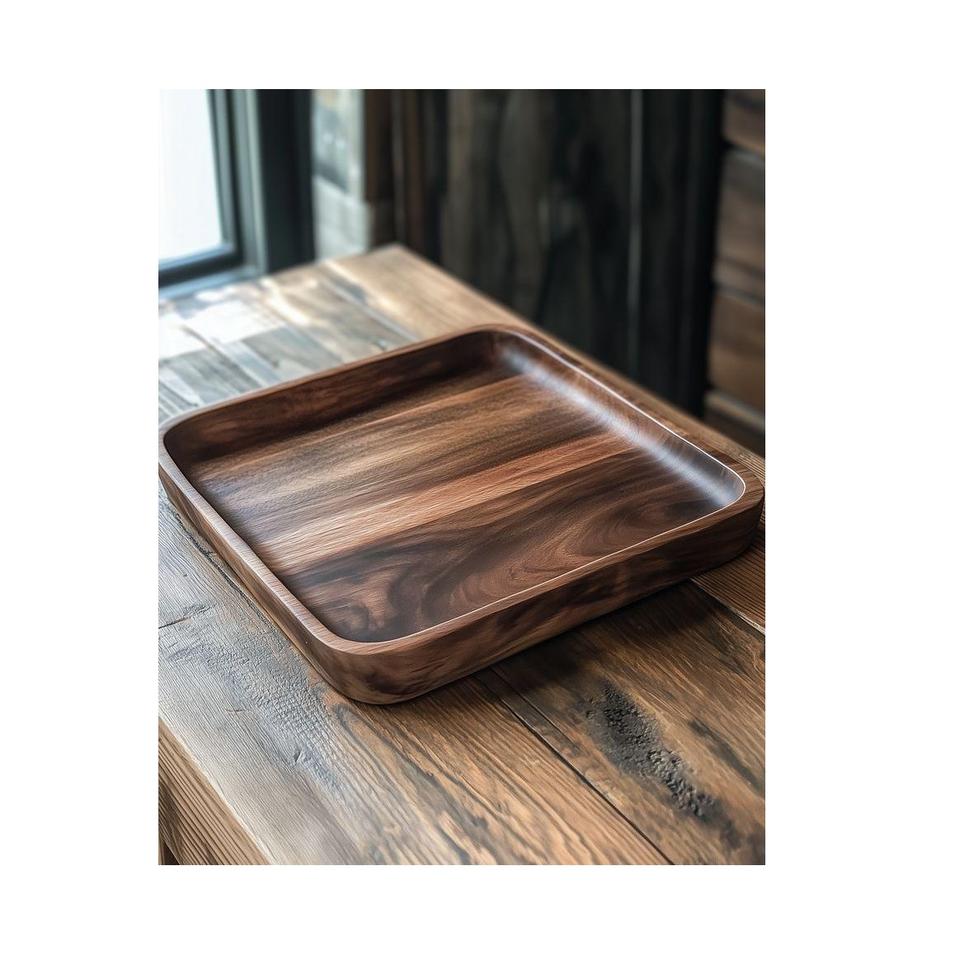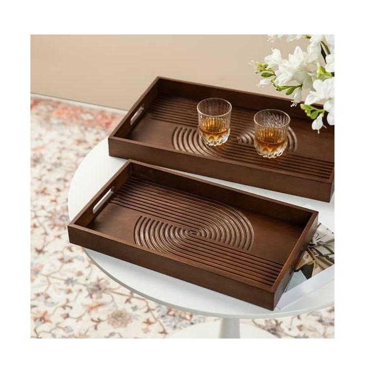 ถาดไม้สีน้ำตาลเข้มสุดหรู เหมาะสำหรับเสิร์ฟชาและอาหารเช้า