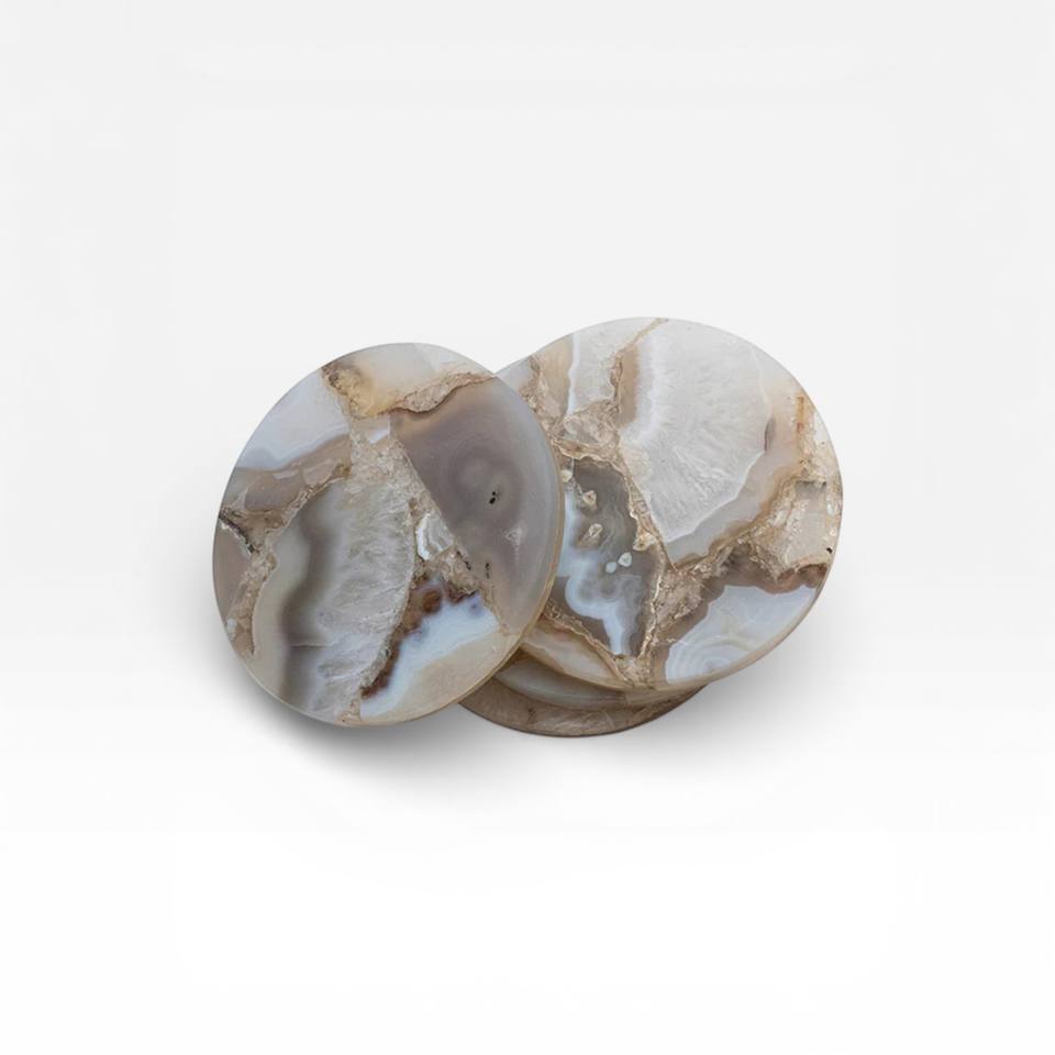 ชุดจานรองแก้วหินอาเกตสีน้ำเงินเข้ม ดีไซน์หรูหรา พร้อมแถบคริสตัลซ้อนชั้นและพื้นผิวขัดเงาเรียบเนียน