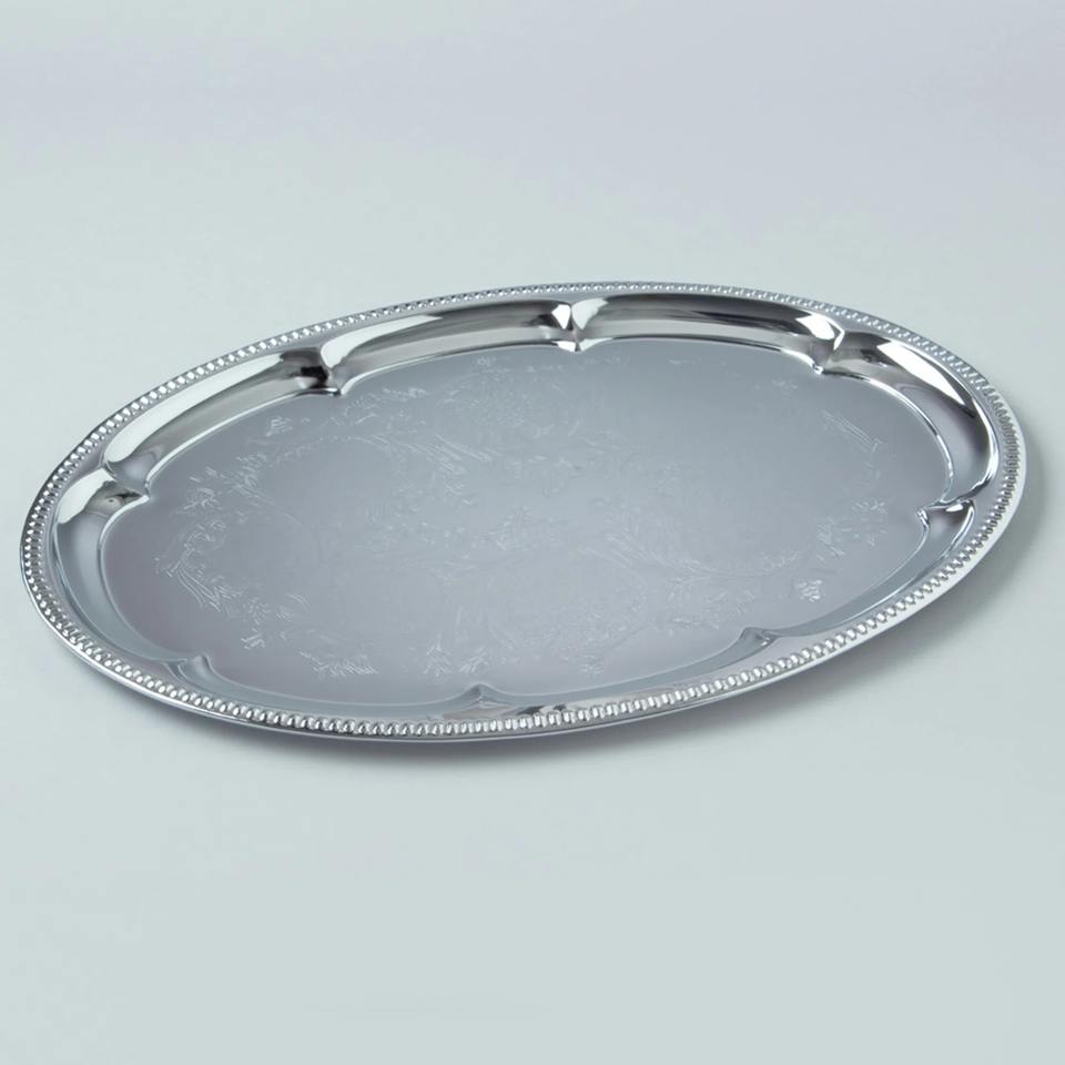 ถาดเสิร์ฟโลหะสีเงินทรงสี่เหลี่ยมหรูหรา ลายดอกไม้สลักขอบประดับลูกปัด สำหรับห้องรับประทานอาหาร ห้องน้ำ ภาชนะใส่เครื่องดื่ม