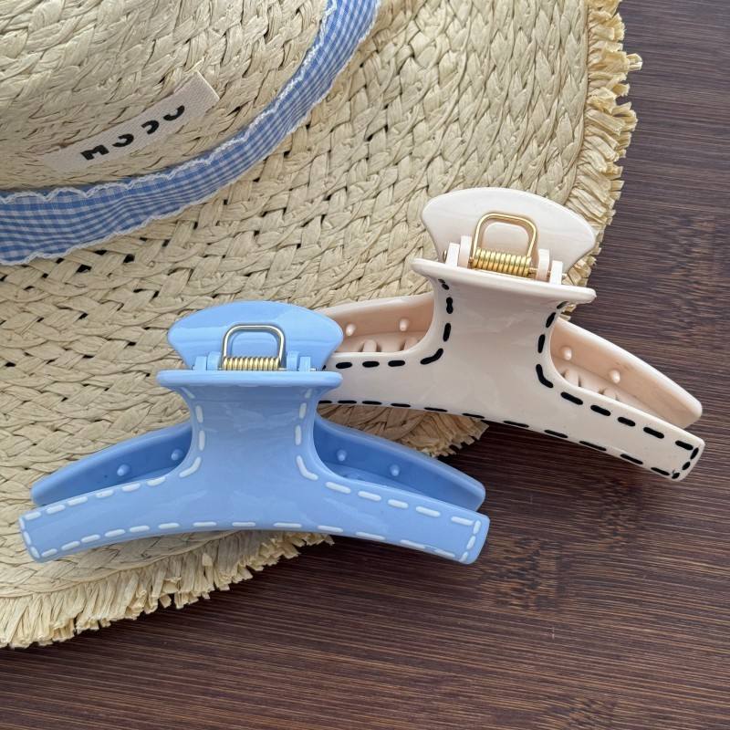 Elegant Denim Hair Claws Clip for Girls Blue Acetate Hair Accessory Water Diamond Shark Design Korean Style Plastic Hair Clip