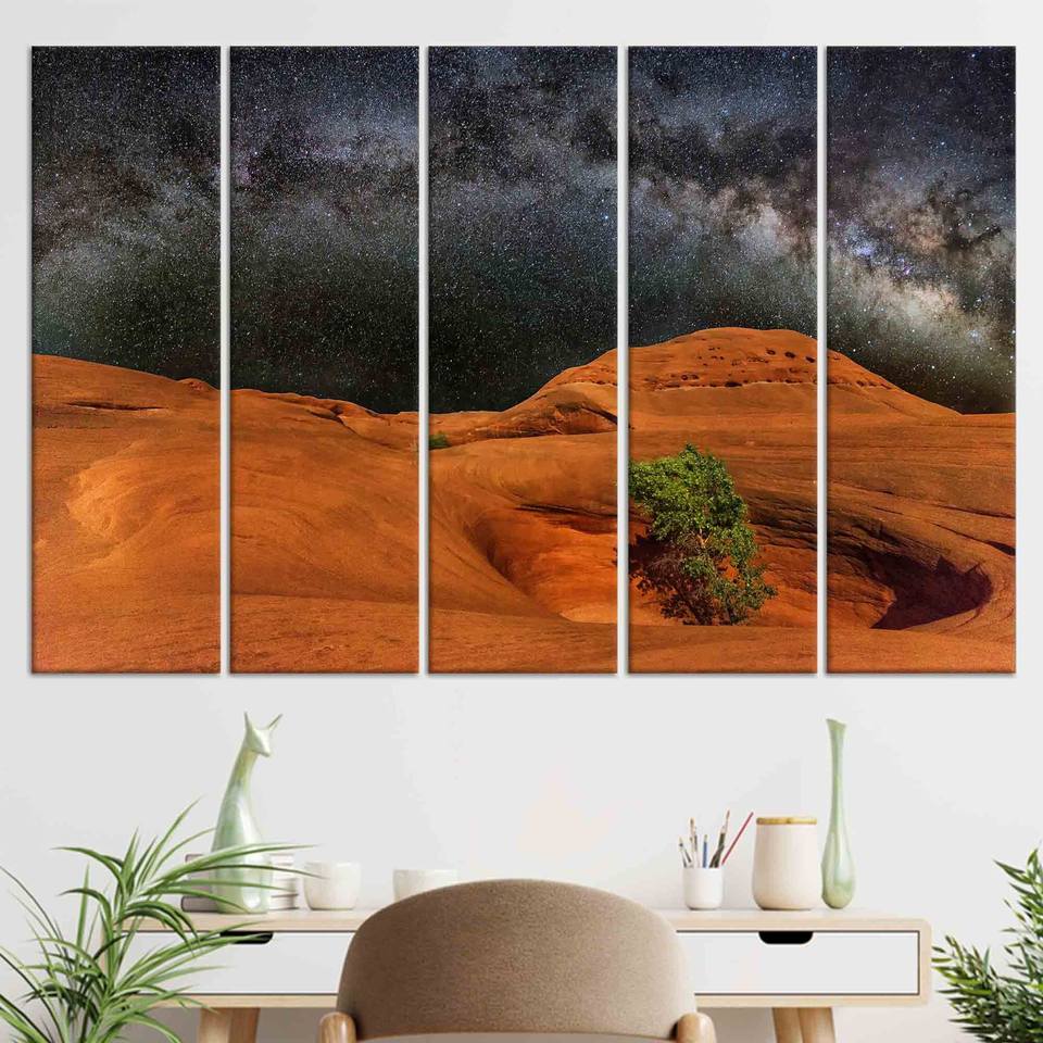 ภาพพิมพ์บนผ้าใบลายวิวกลางคืนที่ทะเลทรายอันงดงามสำหรับตกแต่งบ้าน ชุดผ้าใบ 5 ชิ้น