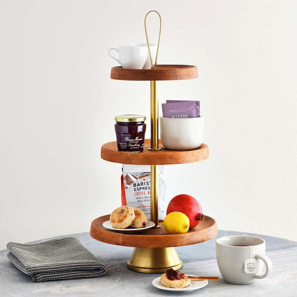ชื่อสินค้า:ถาดไม้ 3 ชั้น พร้อมหูหิ้วโลหะ