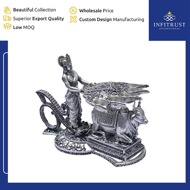 925สเตอร์ลิง Aarti Diya ทำมือของแท้พร้อมอัญมณีดีไซน์หรูหรา