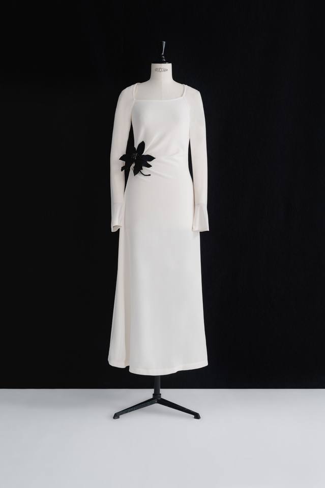 Elegant Design Black & White Long Sleeve Long Women's Dress ABOLI ASYMMETRIC DRESS Good-quality Glimmer Knit Flex Fabric