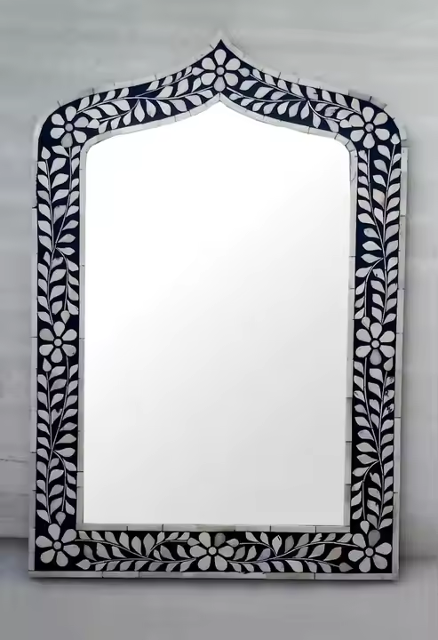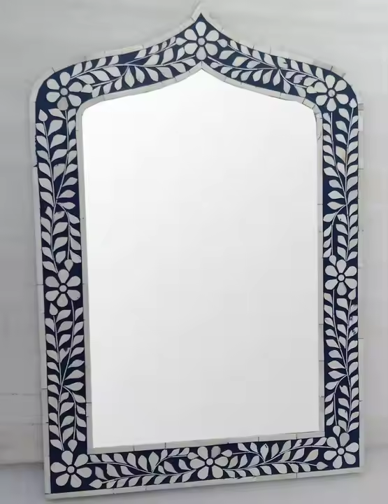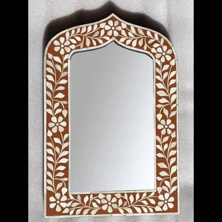 กรอบกระจกฝังลายดอกไม้รูปกระดูกด้วยงานฝีมือรูปพระจันทร์เสี้ยวดีไซน์หรูหรา