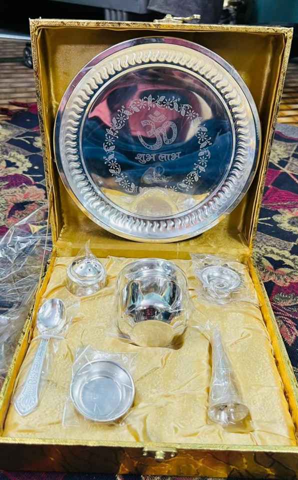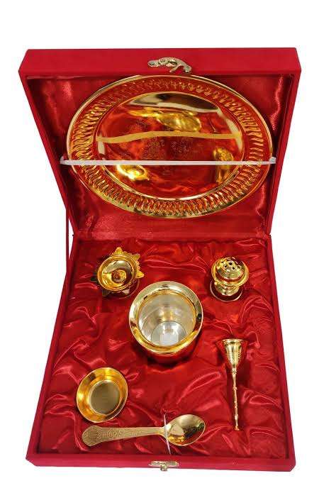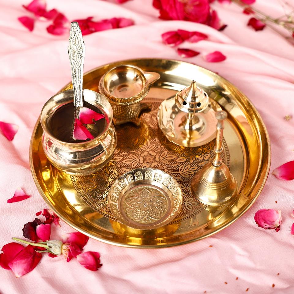 ชุด pooja thali ทำจากทองเหลืองออกแบบอย่างหรูหราทำด้วยมือ & ทำด้วยมือชุด Puja Thali แบบดั้งเดิมสำหรับสินค้าทางศาสนาของชาวฮินดู