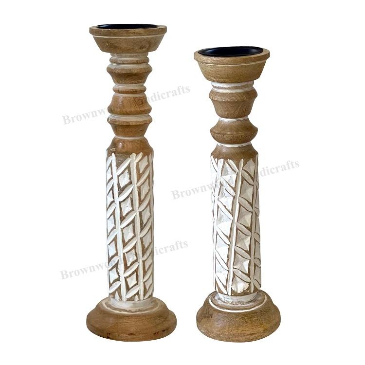 เชิงเทียนไม้สีขาวขัดเงา ดีไซน์หรูหรา รูปทรงหกเหลี่ยม ทำมือ สำหรับตกแต่งบ้าน เทียนทรงเสา คริสต์มาส