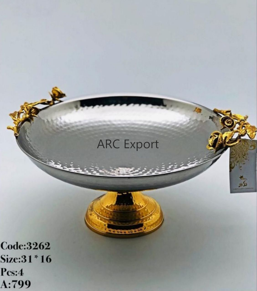 ชามอาหารดีไซน์หรูหรา สีเงินและสีทองลายตอก ชามหรูหราสำหรับขายส่ง ชามสำหรับรอมฎอน ขายดี
