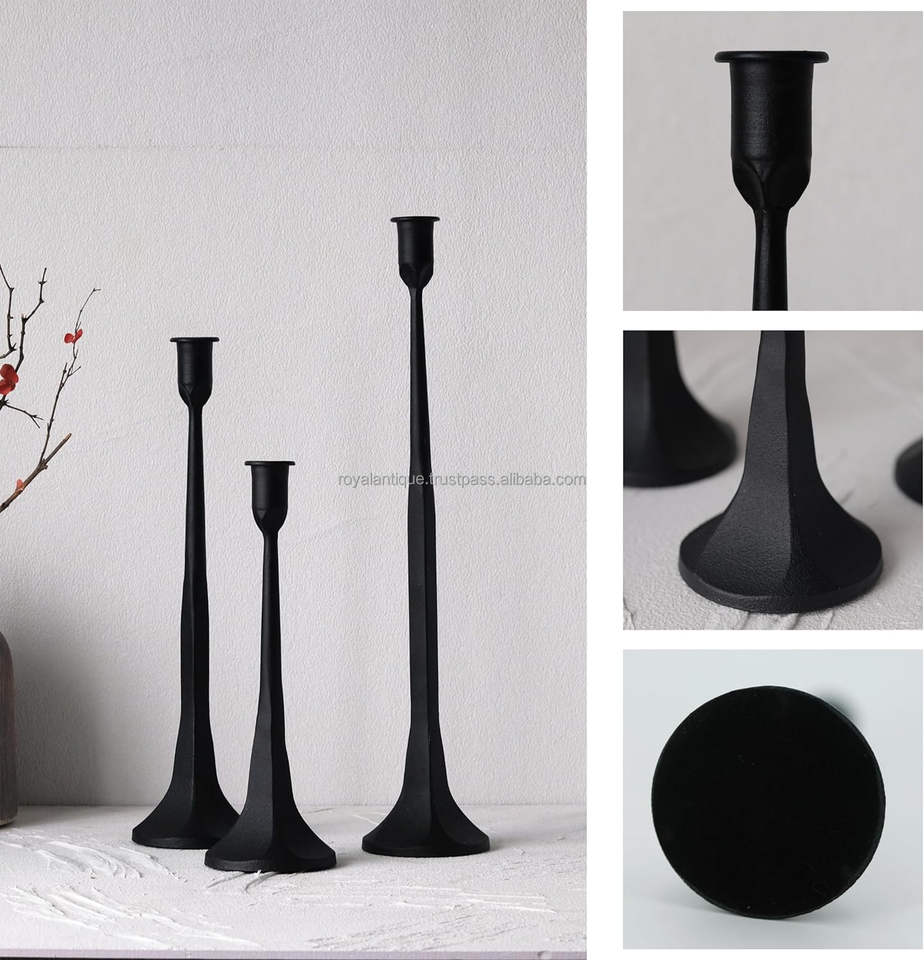 เชิงเทียนเหล็กดีไซน์หรูหราทันสมัยตกแต่งสวนบ้านโบสถ์เสาเทียนโลหะสีดำทำด้วยมือ