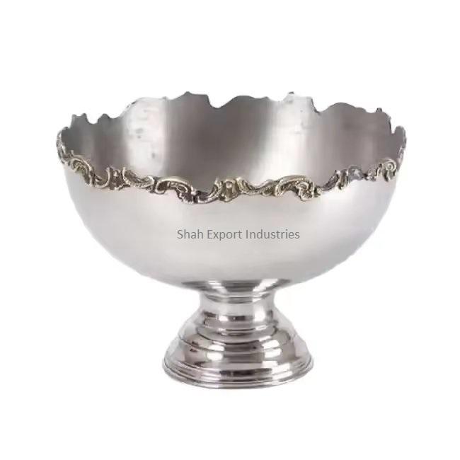 ชามสแตนเลสเก็บค็อกเทลไวน์สำหรับงานปาร์ตี้โรงแรมชามโลหะแชมเปญทรงกลมดีไซน์หรูหรา