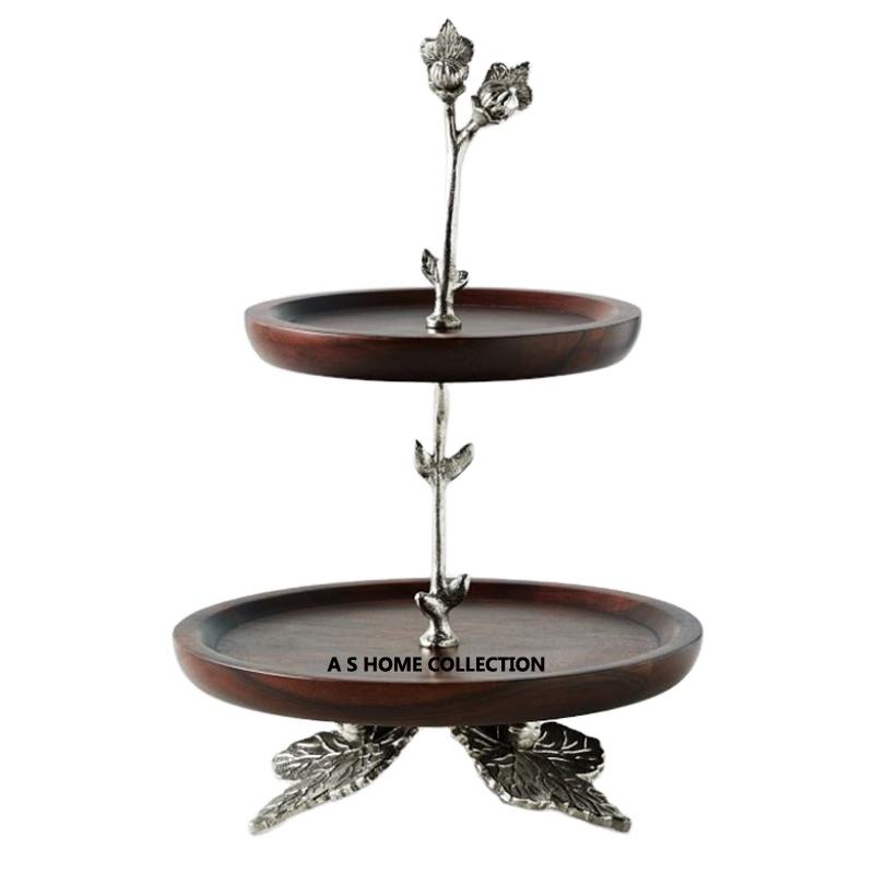 แท่นวางคัพเค้กทรงกลม3ชั้นสำหรับโชว์เค้กแต่งงานทำจากโลหะเงินดีไซน์หรูหรา
