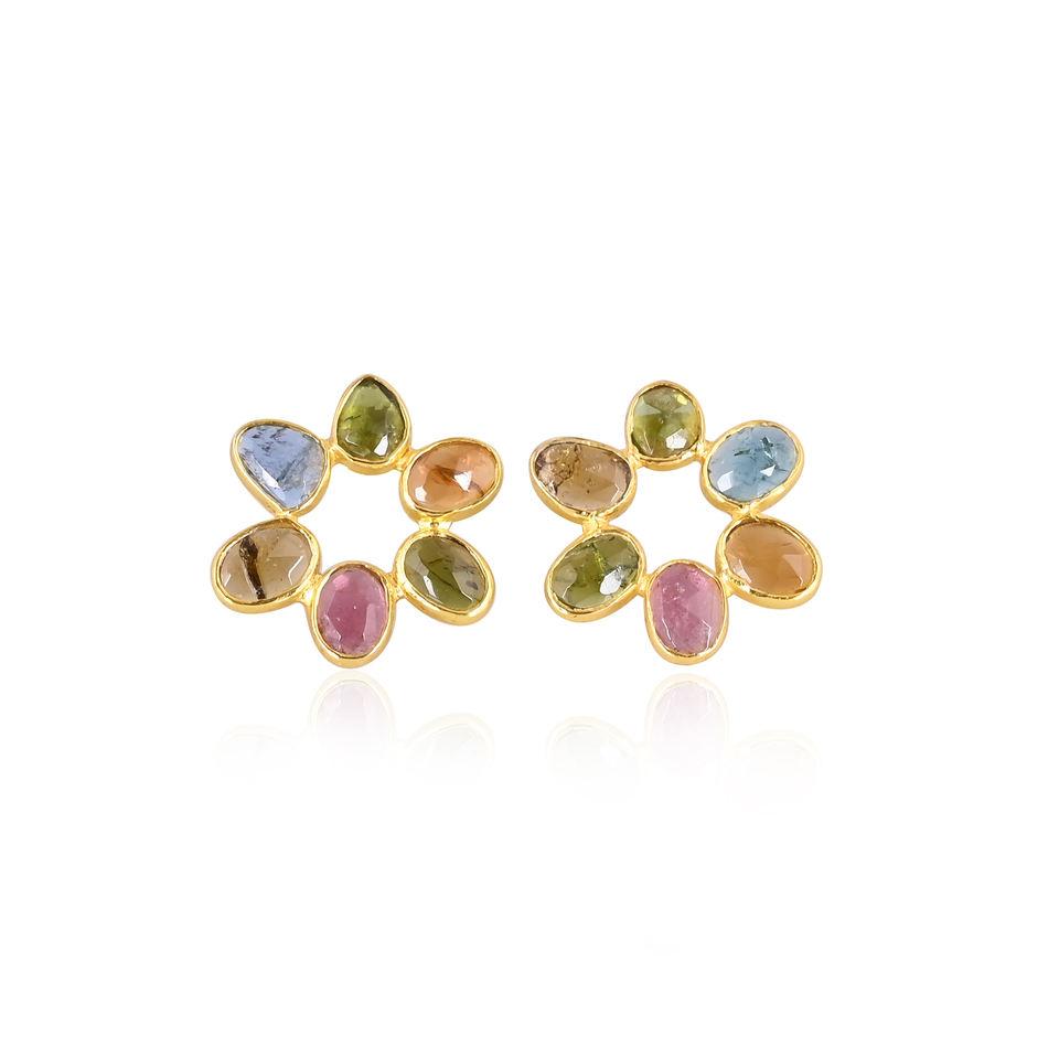 ต่างหูดีไซน์หรูหราประดับพลอยทัวร์มาลีนหลากหลายเม็ด เงินแท้ 925 งานแฮนด์เมดสวยงาม ต่างหูสำหรับผู้หญิง ของขวัญสำหรับเธอ