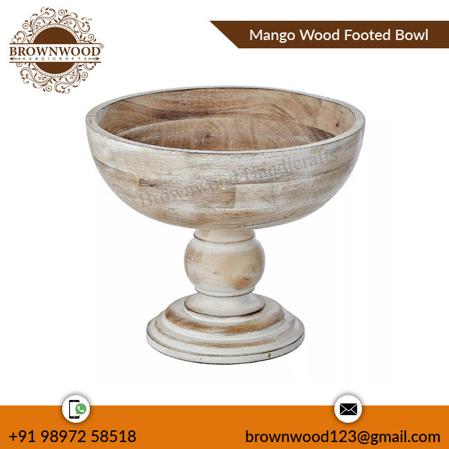ชามแบบมีฐานทำจากไม้มะม่วง