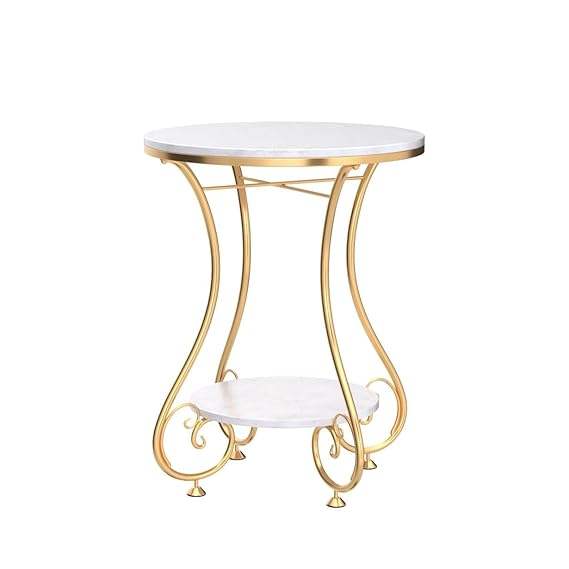โต๊ะเหล็กทรงกลมพร้อมโต๊ะวางด้านข้างเป็นหินอ่อนดีไซน์สุดหรูโต๊ะข้างเตียงสำหรับพื้นที่ขนาดเล็ก