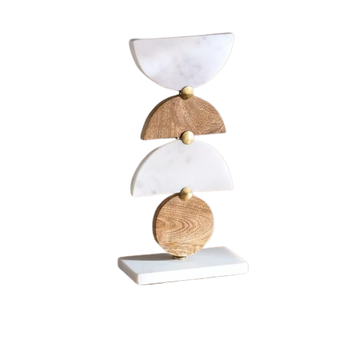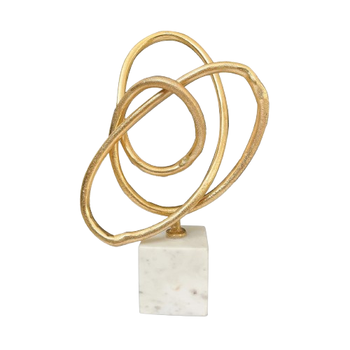 ของตกแต่งโต๊ะสไตล์หรูหราทันสมัยสำหรับฤดูร้อนและตกแต่งบ้าน บนฐานหินอ่อนและท็อปโลหะรูปทรงไม่สมมาตร