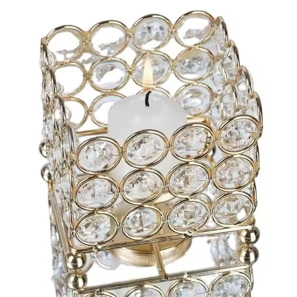 เชิงเทียนคริสตัลรูปทรงกระบอกสำหรับตกแต่งสวนดีไซน์หรูหราเชิงเทียนสำหรับตกแต่งโต๊ะทำด้วยมือเชิงเทียน