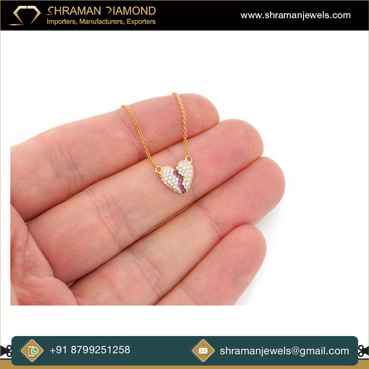 925เงินสไตล์ฮิปฮอปทันสมัยจี้เพชรรูปหัวใจขาดสีเหลืองทองสำหรับงานปาร์ตี้และของขวัญวันวาเลนไทน์