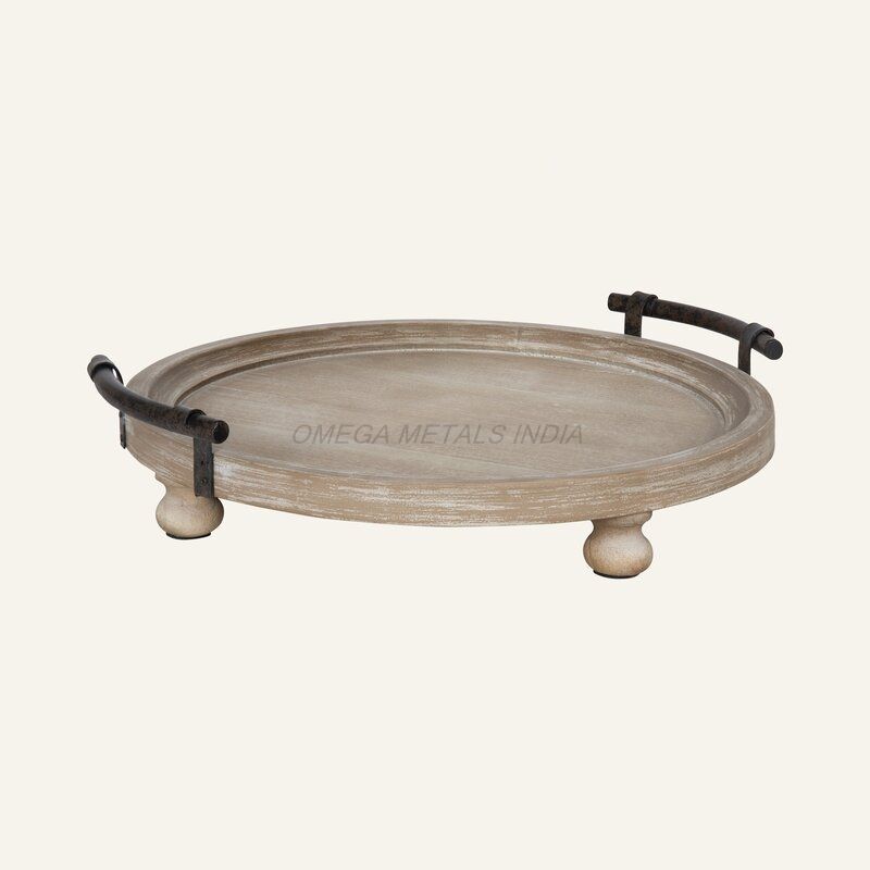 ชุดถาดไม้สีขาวกรอบทรงกลมและตกแต่งทันสมัยเหมาะสำหรับตกแต่งบ้านอย่างมีสไตล์